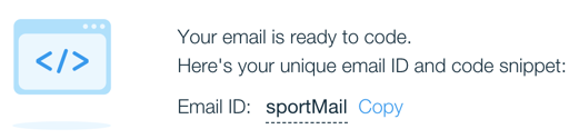 트리거된 이메일 ("sportMail")의 ID와 여기에 포함된 모든 변수의 이름 (name, sport, comments)이 코드 스니펫에 반영됩니다.